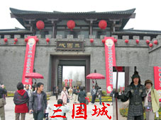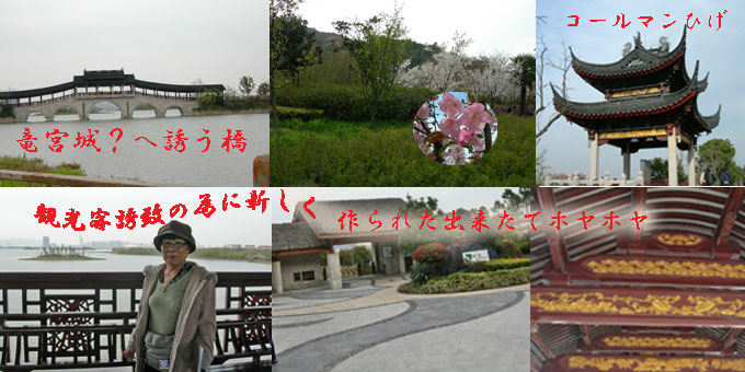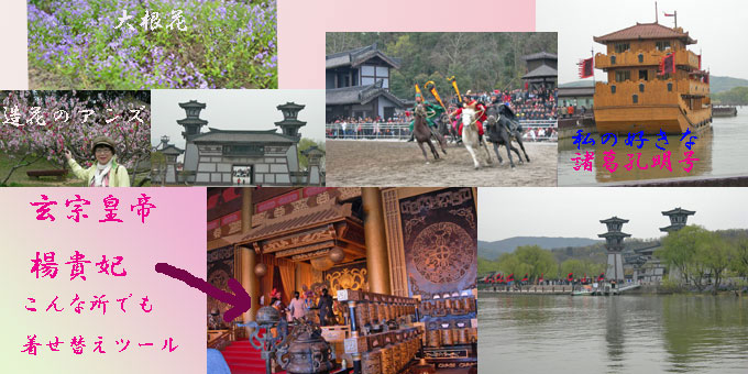 三国志の映画の撮影をした場所をそのまま観光施設に。美しい桃とアンズの花にカメラを向けるが、美しいアンズが総て造花とわかり・・・ようやる。 |