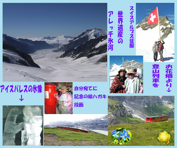 【12日=第二日目】 登山列車でスイスアルプス3大名峰へ。