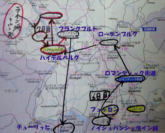 【地球の歩き方】の【スイス・ドイツ】編から、旅行した所をピックアップして記入して見ました。