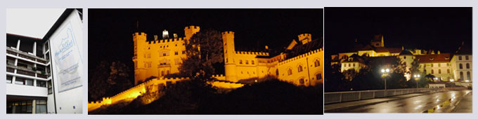 暗闇にライトアップされ、浮かびあがったホーエンシュバンガウ城(父、マクシミリアン2世が夏の狩用として立てたお城)は娘のカメラでは何とか写りましたが、私のは全然ダメでした。ルートヴィヒ2世のノイシュヴァンシュタイン城は娘のカメラの望遠でさえ届きませんでした |