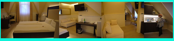 増築中とのこと、で高齢者は優先的に部屋のある階までエレベータで行ける4Fへ。凄いデラックスルーム。大きなキッチンもあるし、ソファーBEDも付いています。