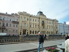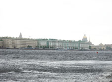 10::00バスで出発。市内を走って 20分、1時間のネヴァ河クルーズです。舟が通るときは開橋するハネ橋も見られました。 |