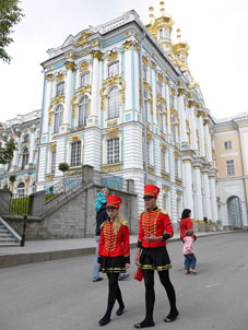 | 12日:プーシキンへ 9:00にバスで出発です。約1時間で世界遺産の【エカテリーナ宮殿】へ到着です。 |