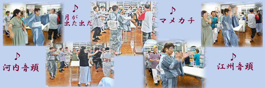 先ずは♪河内音頭で体をほぐし・・♪マメカチでは走り回り・・・♪未だ覚束ない江州音頭でチョットバラバラになって最後の締めは♪炭坑節。