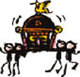 ”掘って掘って又掘って、かついでかついで 、見上げて見上げて 押して押して チョチョンガチョン” 掛け声を掛けながら、楽しく汗を流しました。