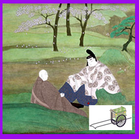 2012年5月 【若紫の巻】わらわ病み(おこり)を患った光君が北山に霊験ゆたかな行者がおります、とのことで側近4,5人だけを連れて北山へ出かけられます。 、”犬君 (召使いの童 いぬき)が雀を逃がしたと”祖母の尼君に訴えている童女を垣根越しに覗き見します。それが光君と紫の上との最初の出会いです。 自分の手でいつくしみ育て上げたら・・理想の女性に育てあげたい・・そう願って、光君は、奪うようにその童女を自分の館へ連れ去ります。 |