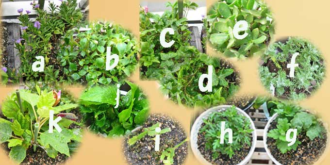 f:レースラベンダー gとh:菊 i:カニシャボテン (gとh・I は整骨院で頂きました。) j:スパシフィラム k:かしわばあじさい |