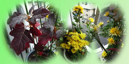 我が家のガーデンで現在色付いている花と葉っぱです。画像は左から