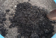 目の粗いとおしで根っこや軽石をふるいます。 |