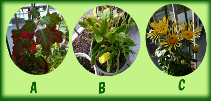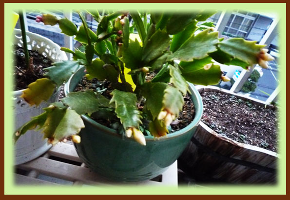 B:カニシャボテン:みちえさんに教えて頂いて9月に一節目から折りました。今は先端が赤くなっています。みちえさんに伺いますと、これから花が咲いて来てくれるとか。 今年こそ花が咲いてくれるのかなあ・・・楽しみにしています。