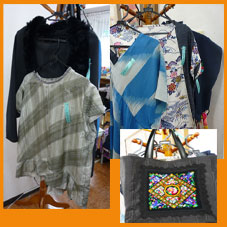 【ななふくさん】沢山のリフォーム作品とお洒落なタウンBAG。御主人様の着物とご自分の紅型を合わせて作られた作品。ホントあったかいでしょうね。夏のブラウスも素敵です。 | |||||||||||||||||||||||||||
