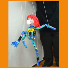 【みずきさん】マリオネット”コンボちゃん” リリちゃんが人形を持ってポーズを作ってくださいました。赤い毛と大きなお鼻。良いですね |