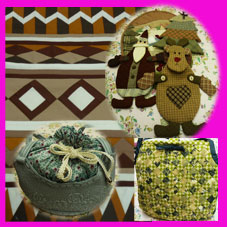 | 【れいちゃん】沢山のパッチワーク作品。 さすがに教室を任されるだけの技量。素敵なRibon編みのBAG。Xmasのサンタさんトナカイ君も verry good。 |