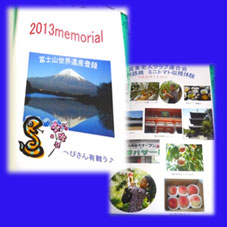 【村長さん】富士山世界遺産に登録されたのを記念してメモリアル作品の表紙に。自力100%でにこやかな笑顔で”出来ました”の声。弾んでいます。 | |||||||||||||||||||||||||||