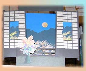 両端の取っ手を引っ張る→障子が開く→立体的な外の景色、お月見が見られます。