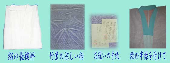 姉とお揃いにと・・二人分の絽の生地を買ってくれたそうです。早速手持ちの絽の半襟の中から、水色を選んで付けました。